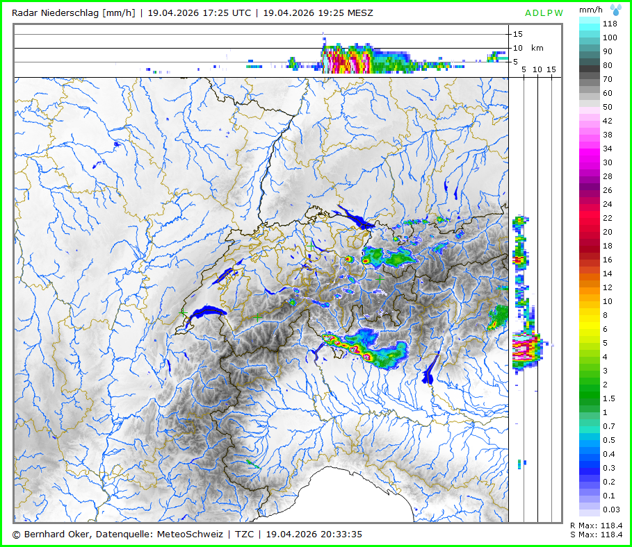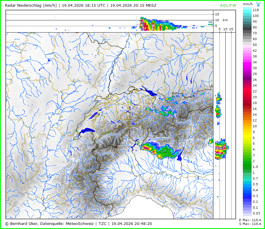 Radar Niederschlag Hagelwahrscheinlichkeit Maximale Hagelkorngrösse