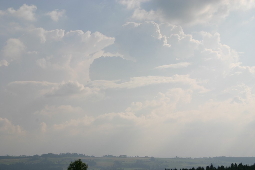 Dort angekommen waren Richtung Rigi/Pilatus nur ein paar vertrocknende Cumuli zu sehen, aber Richtung Napf und Bern schossen frische und kräftige TCu in die Höhe.