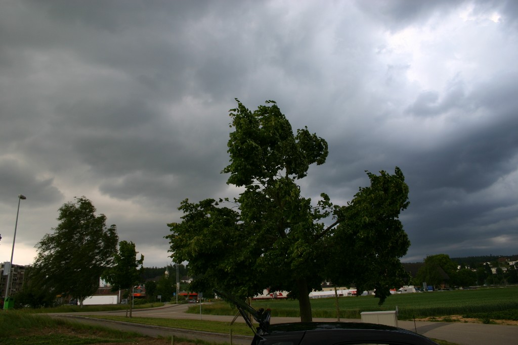 fuhren wir auf die Autobahn Richtung Oftringen und entscheiden uns dann anhand der Lage vor Ort für die Ausfahrt Rothrist um die heranziehenden Zellen zu beobachten, ohne direkt in den Starkregen zu geraten.