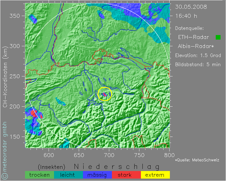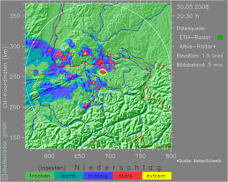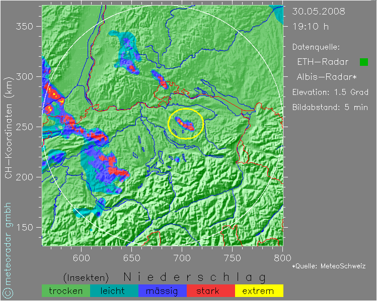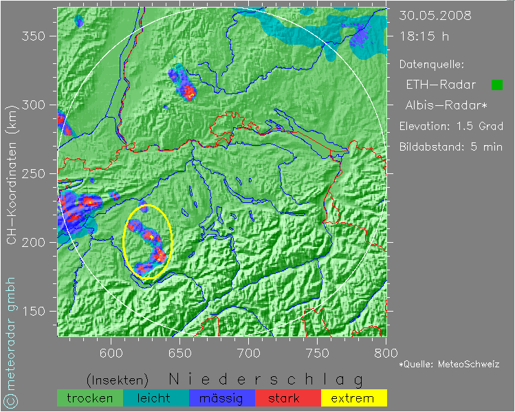Plötzlich bildete sich in der Ostschweiz eine neue kräftige Zelle.