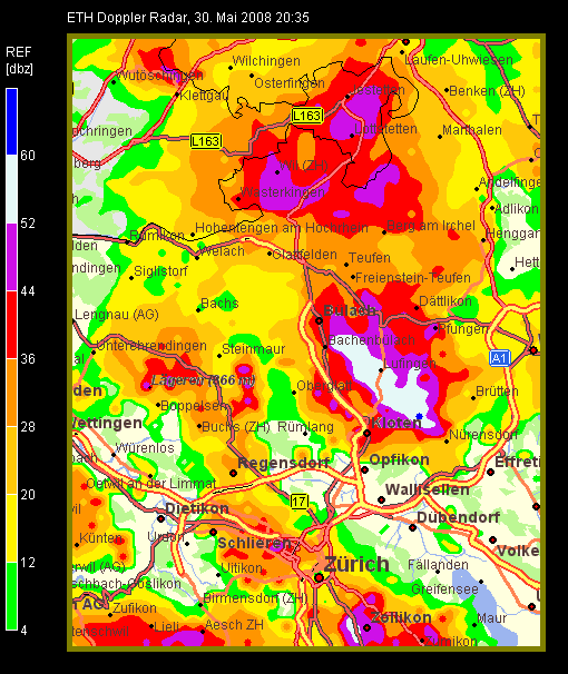 Die Zelle Richtung Kloten hatte sich schnell verstärkt und die Inflow/Outflow Bereiche waren schön voneinander getrennt.