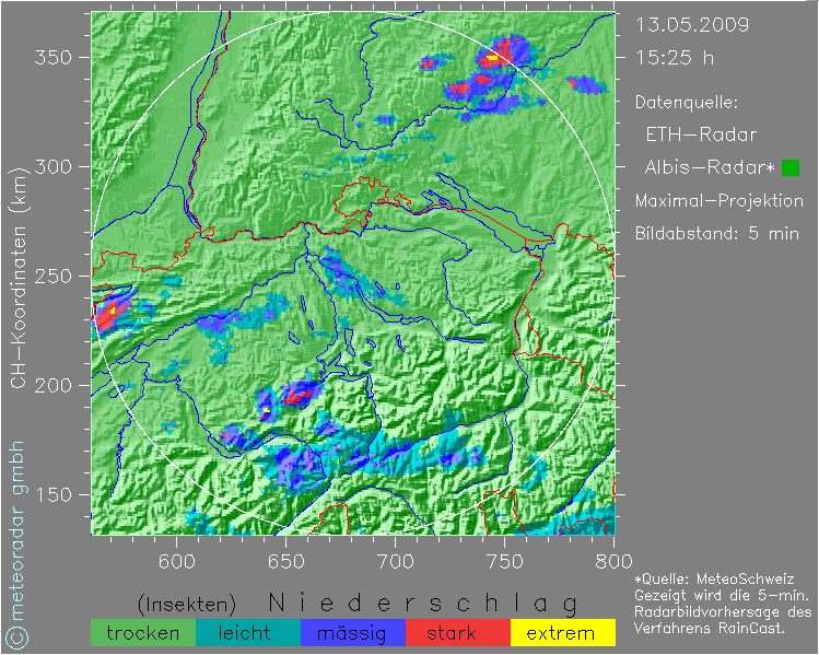 Weitere Zellen bildeten sich gemäss Radar gegen 15:30 Uhr an den zentralen Voralpen